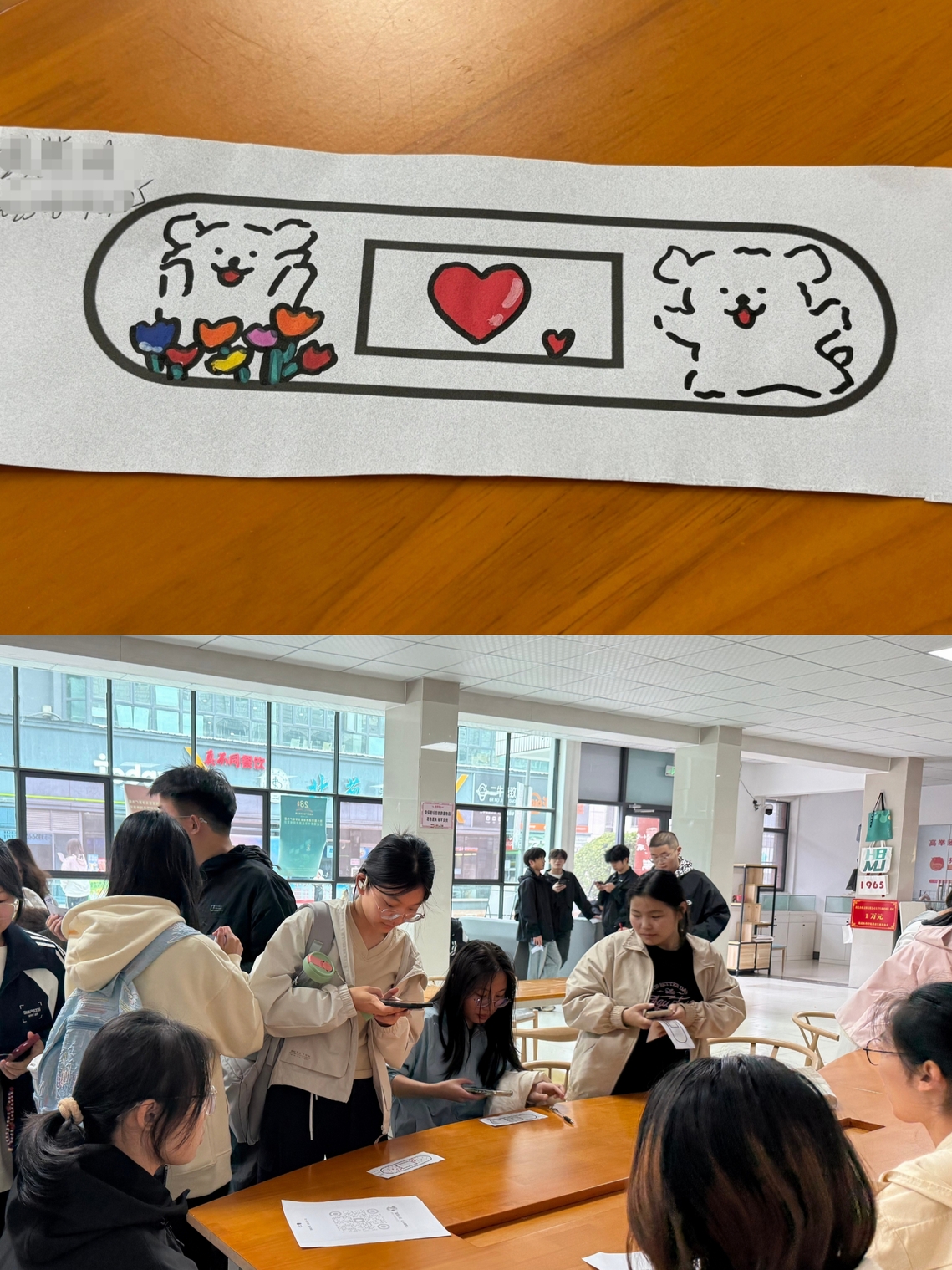 活动现场氛围宁静而富有感染力,参与者在纸上绘制近期引发不适、悲伤的事件或情绪;随后再创作具有疗愈意义的图文于创可贴纸笺;最终将创可贴剪贴于“情绪伤口”处,象征主动修复与自我关怀,通过“识别情绪—具象创伤—创作疗愈图文—贴敷伤口”的递进过程从而达到有效的自我疗愈目标,使参与者正视并表达内心感受每一笔描绘都是对自我面对情绪勇气的一种肯定。