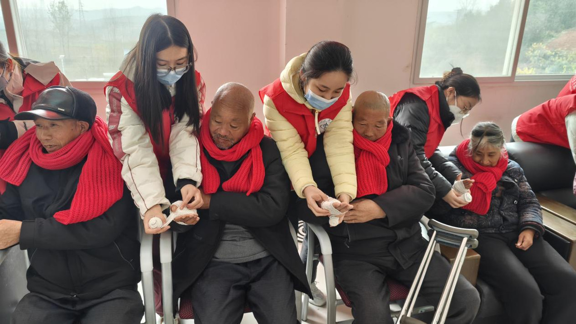 本网讯(通讯员 王秀成)为响应党的二十届四中全会“健全基本养老服务体系,推动全体老年人享有基本养老服务”的部署要求,2025年12月2日,护理学院南丁格尔志愿服务队、周丽急救志愿服务队携手研究生党支部共赴丹江口石鼓镇农村福利院开展敬老关怀活动,以温情陪伴与专业技能为老年群体送去温暖。