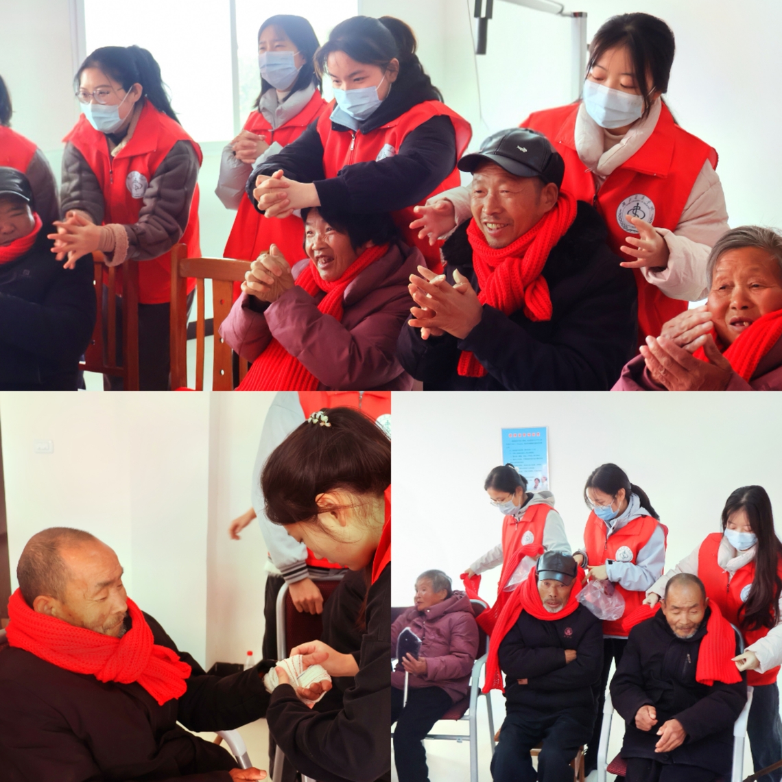 在石鼓镇农村福利院,我校护理学院研究生党员为老人们赠送围巾、手套等暖心礼物。志愿者们还为老人进行了歌唱表演、手势舞、击鼓传花等活动进,营造温馨氛围,展示了海姆立克、绷带包扎术急救知识实操。研究生党员带领老人学习“健脑”健身操,现场欢声笑语不断。在该活动现场同步开展义诊活动,护理学院师生为老人进行了血压、血氧测量及口腔健康筛查。