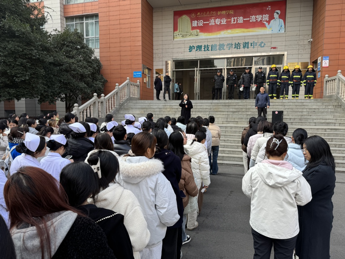本网讯(通讯员 吴敏)为进一步增强师生消防安全意识,提升应对突发火情的自救互救与应急疏散能力,响应学校“百日行动”号召,2025年12月18日上午,护理学院联合校保卫处于八号楼组织开展了消防应急疏散演练护理学院无课教职工、2025级全体主要学生干部及寝室长、部分实验课学生共计300余人参与了演练。