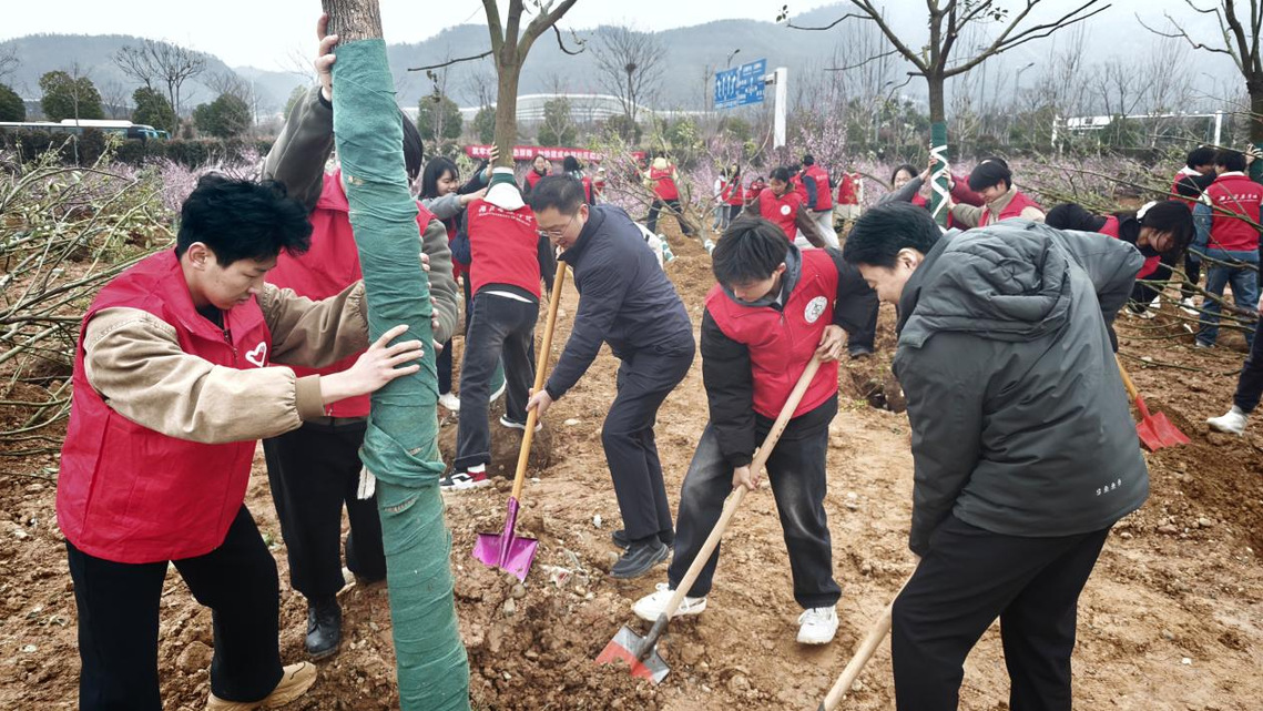 劳动现场一派热火朝天的景象,志愿者们个个干劲十足、精神饱满,即便泥土沾满鞋袜、汗水浸透衣衫,也丝毫没有减退热情,始终以严谨认真的态度完成每一道工序,用心呵护每一棵新苗。过程中,部分志愿者主动伸出援手,协助体力较弱的同伴传递工具、分享植树技巧,在互帮互助中提升劳动效率,也让志愿服务精神在协作中传递升温。