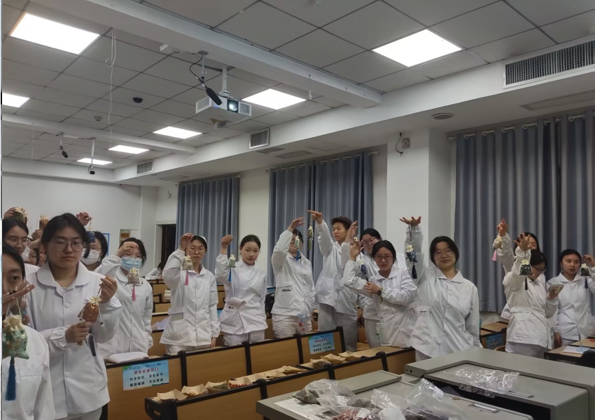 线下活动中,班委细致讲解清明扫墓、插柳、吃青团等习俗的文化底蕴。革命先烈故事分享会上,同学们踊跃讲述邱建国、萧楚女、吴焕先等先烈事迹,重温革命岁月,感悟其不畏牺牲、忠诚报国的精神,廉洁奉公的种子在心中萌发。随后,同学们在班委指导下,用艾草、薰衣草等香料制作香囊,寄托对先烈的缅怀与对清正美好生活的期许。