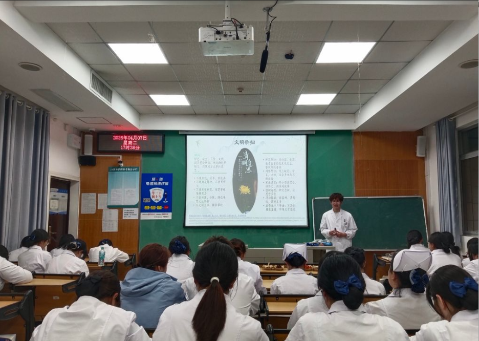 本网讯(通讯员 王秀成 任秋瑜)4月7日下午,护理学院2024级护理(中职)班开展“清明寄哀思,传统润人心”班级特色活动,以线上线下相结合的沉浸式形式,引导学子缅怀革命先烈、传承中华优秀传统文化,以文明祭扫理念营造清廉校园氛围,让爱国情怀与清风正气扎根校园。