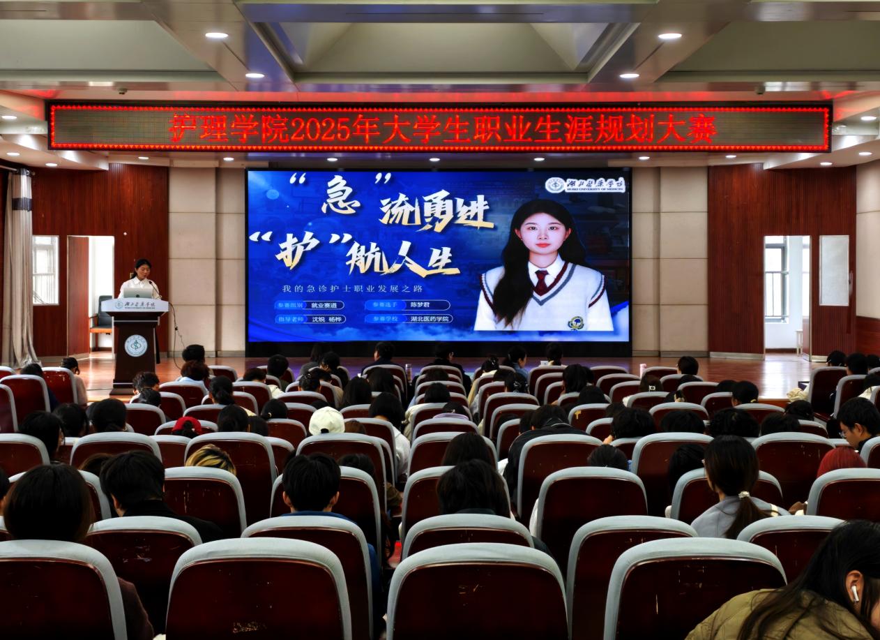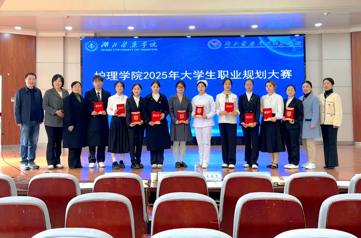 本网讯(通讯员 吴敏 张典颖)2025年11月14日上午,护理学院2025年大学生职业规划大赛复赛于八号楼五楼多功能厅成功举办。本次大赛特邀护理学院党委书记王桂琴、校招生就业工作处副处长郑东、附属太和医院护理部科护士长夏俊琳、附属国药东风医院成人护理学教研室主任张文梅、附属十堰市人民医院护理部赵冬梅等资深专家担任评委。护理学院全体学工辅导员及2024级、2025级学生代表共300余人现场观摩了比赛。